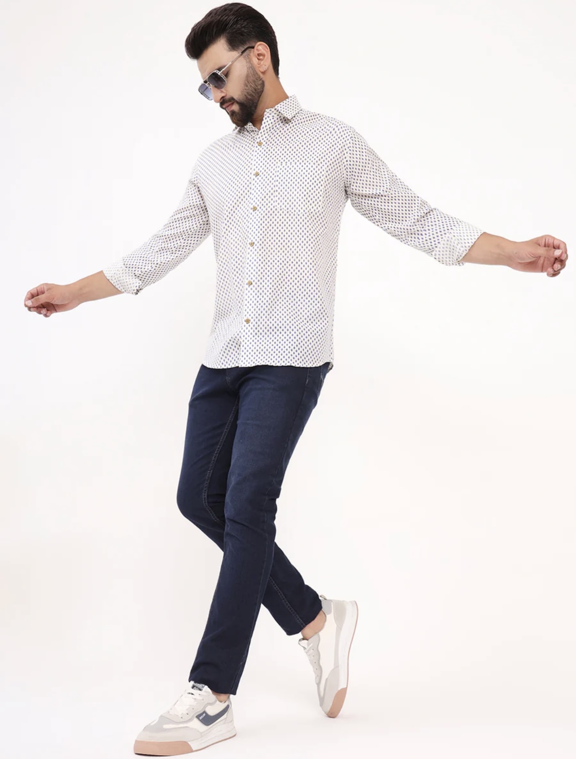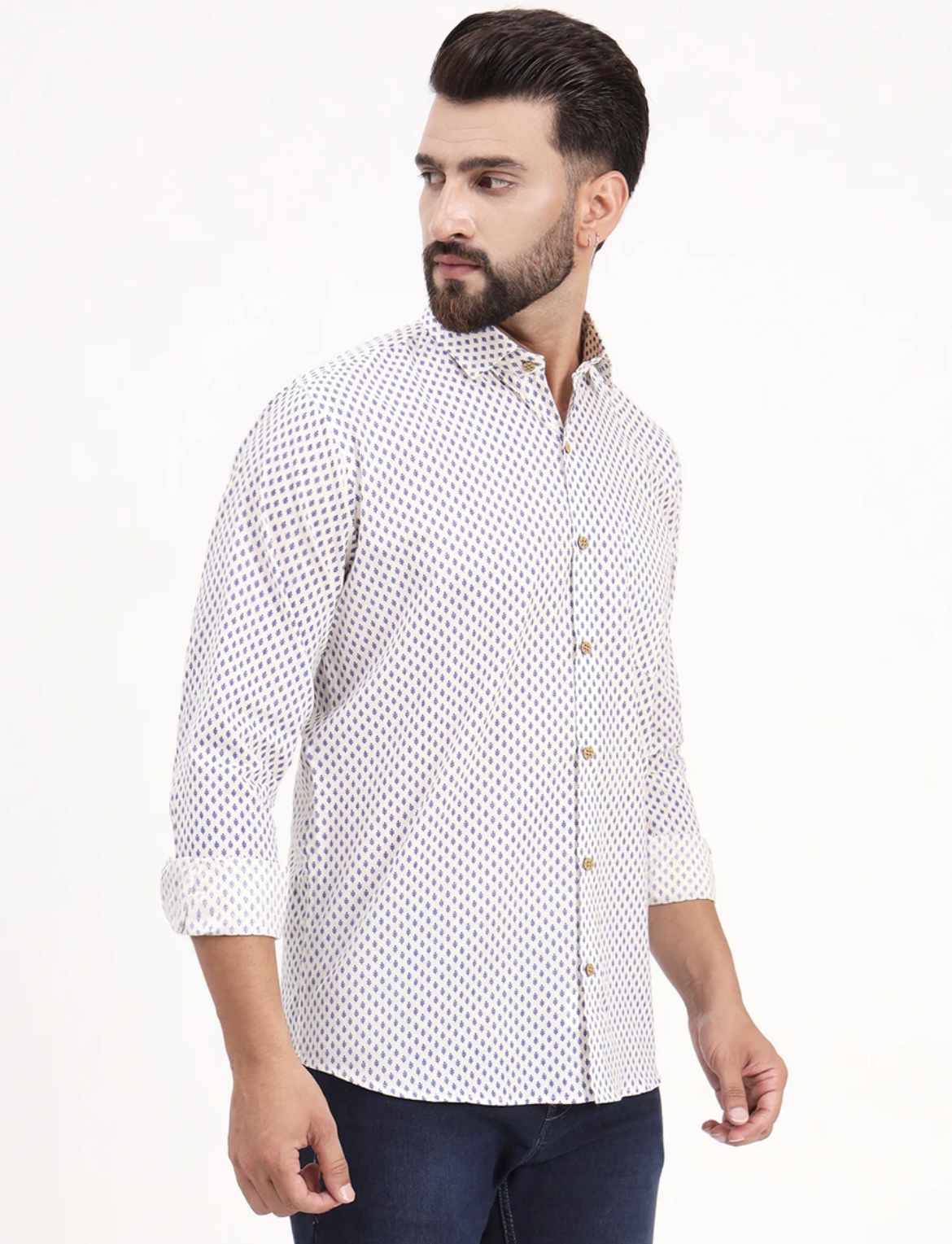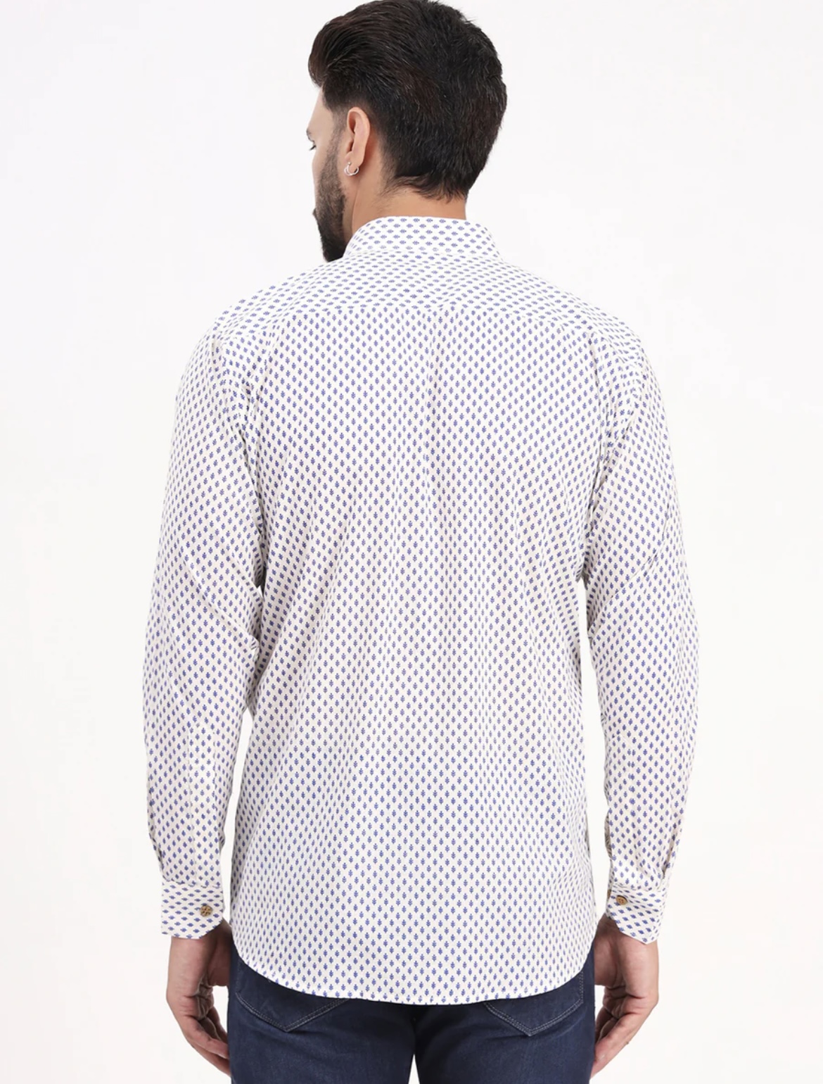 Full Sleeves Shirts MILLENNIAL MEN White Floral Printed Full Sleeves Shirt