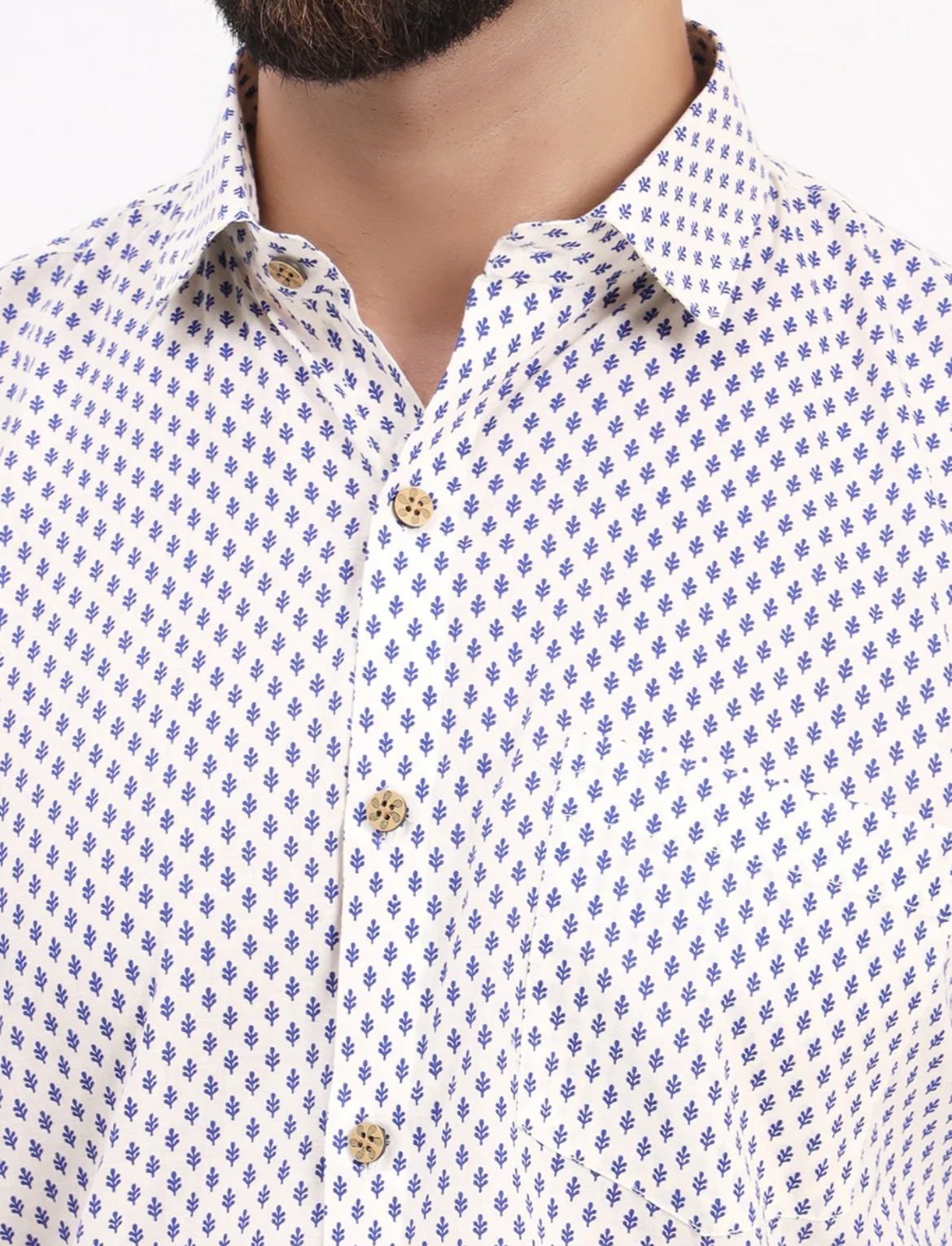 / Full Sleeves Shirts / MILLENNIAL MEN White Floral Printed Full Sleeves Shirt